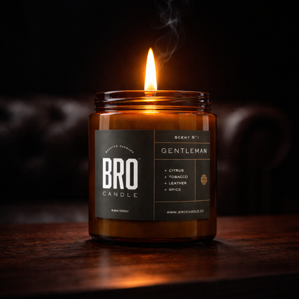 Masculine scents. Chemical-free soy wax. 50+ hour burn. None of that lavender-and-vanilla nonsense.