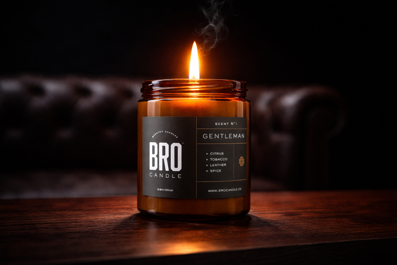 Masculine scents. Chemical-free soy wax. 50+ hour burn. None of that lavender-and-vanilla nonsense.